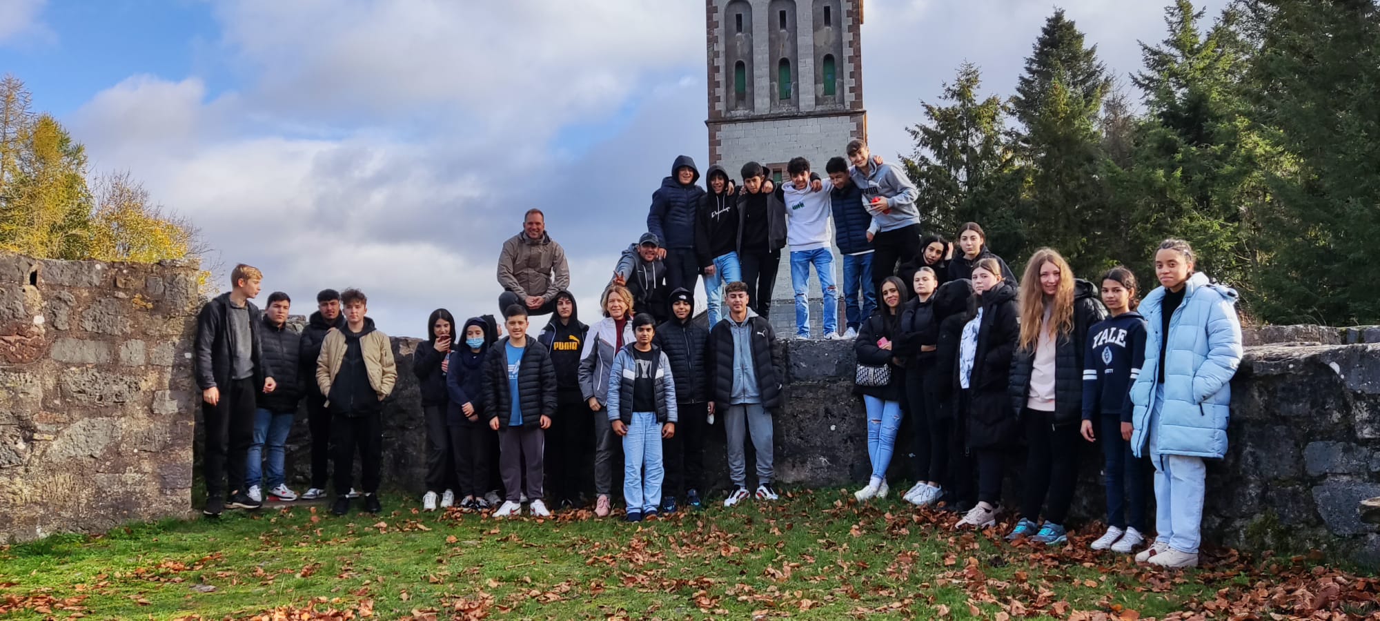 Am Donnerstag, unserem letzten Tag, fuhren wir noch mit dem Bus nach Goldhausen, einem Stadtteil von Korbach, und wanderten zum Eisenberg. Hier gibt es ein Besuchergoldbergwerk, das leider geschlossen war. Man konnte aber eine Burgruine mit einem Turm besichtigen und alle hatten Spaß daran, in den alten Gemäuern herum zu klettern. Hier entstand auch das gemeinsame Gruppenbild beider Klassen. Wir fuhren mit dem Bus zurück zur Jugendherberge, wo wir noch zu Mittag aßen. Dann brachen wir zu unserer Rückfahrt auf. Um 17.30 Uhr kamen wir am Langener Bahnhof an, etwas müde, aber glücklich über eine gelungene Klassenfahrt.